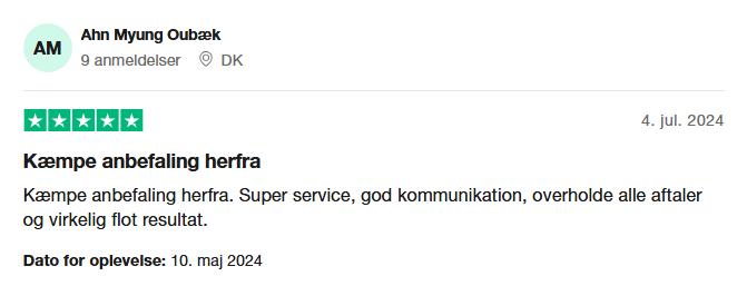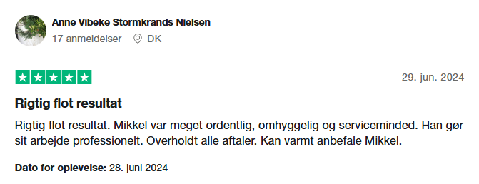 Hos os er kundetilfredshed altid i centrum. Vi stræber efter at give dig en problemfri oplevelse, hvor vi lytter til dine ønsker og sikrer, at alle dine behov bliver opfyldt. Du får du ikke kun et flot resultat, men også en venlig og professionel service hele vejen igennem.