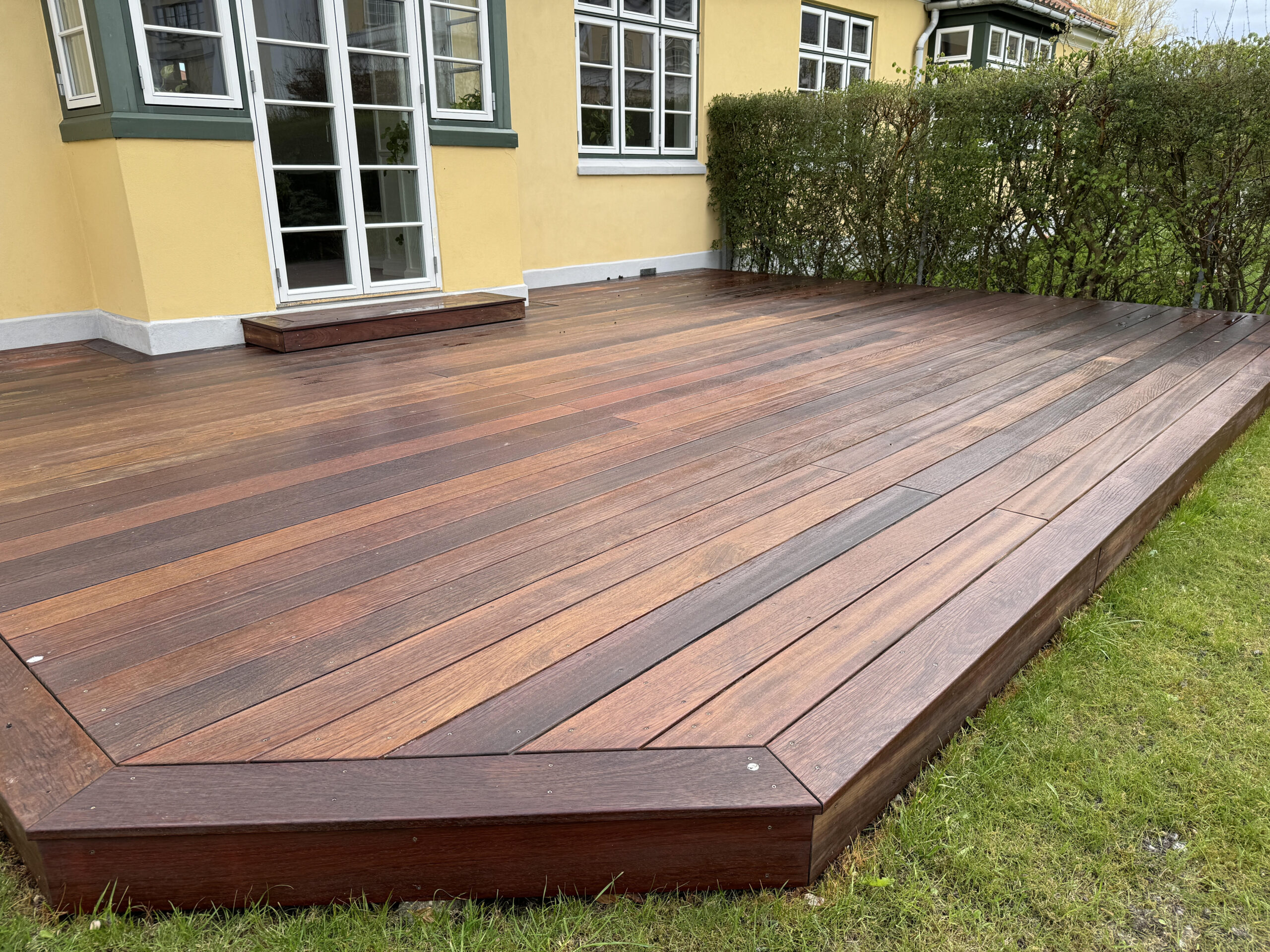 Slibning af træterrassen frembringer den originale træfarve samtidig med at det giver en jævn og behagelig overflade.